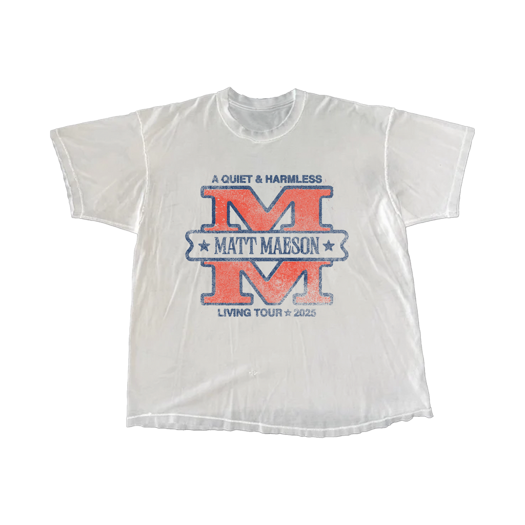 Unisex white t-shirt with a Matt Maeson Collegiate design printed on the front.